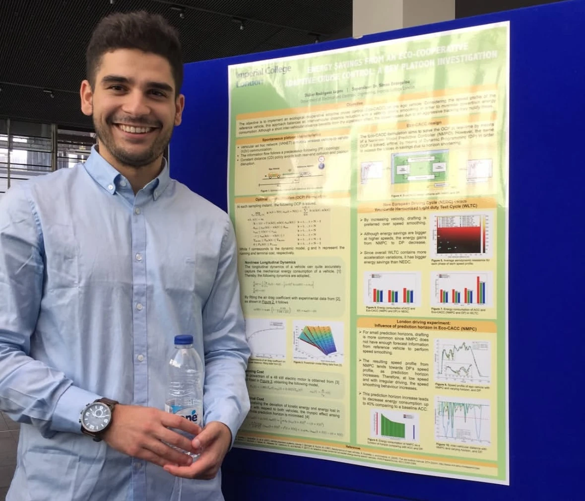 Presenting my thesis at Imperial, where I selected the topic of "Energy savings from an Eco-Cooperative Adaptive Cruise Control: a BEV platoon investigation"