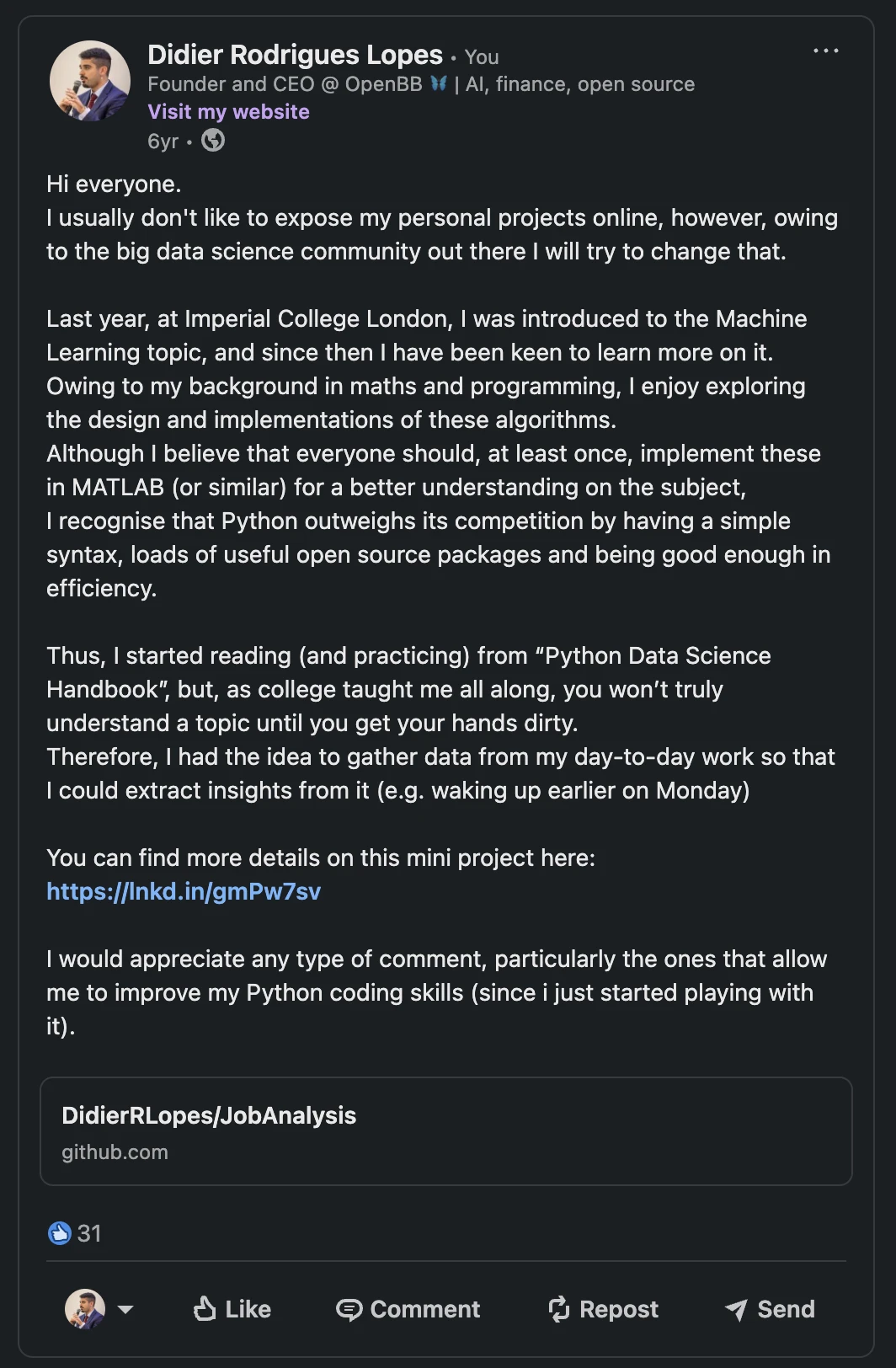 A personal reflection on my 6-year journey to 10,000 LinkedIn followers and how sharing my work publicly led to unexpected opportunities and the creation of OpenBB.