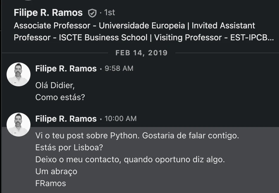 That message was about challenging me to help him write the code behind his thesis, which was about Modeling and Forecasting of Financial Time Series.