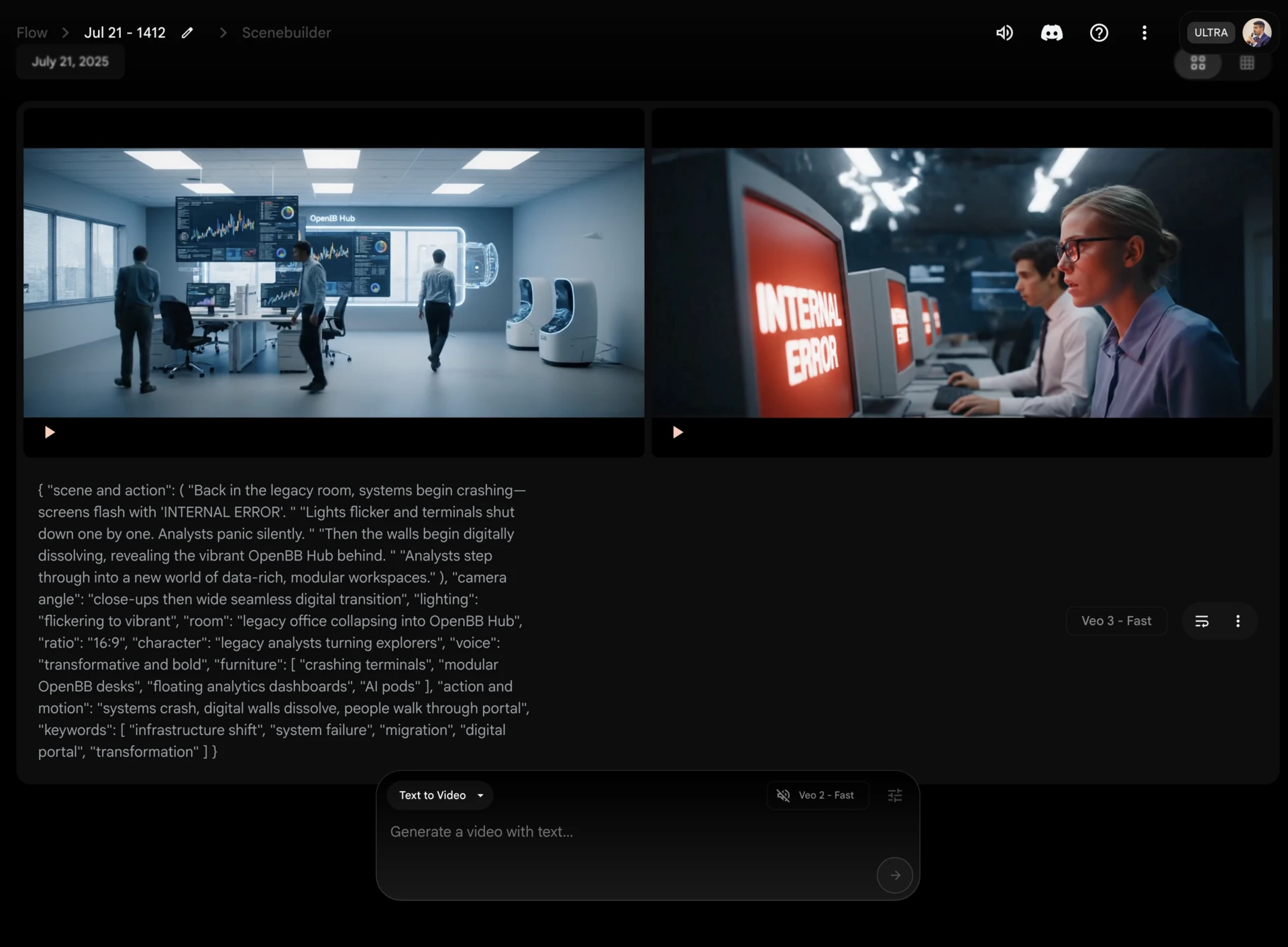 Between dog walks and daily routines, I found myself sketching out ideas for what would become an AI-generated video to announce OpenBB’s position as a counterpoint to legacy workspace infrastructure.