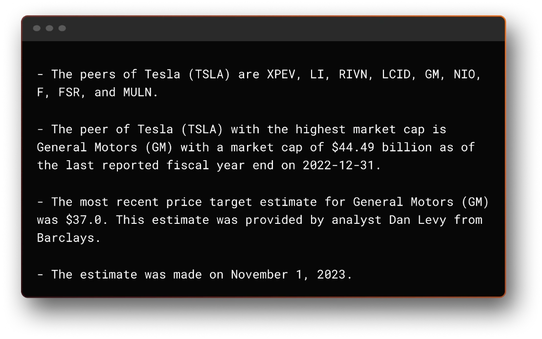 When discussing what tasks we wanted our AI-powered Financial Analyst to be able to perform, we arrived at the following levels (in order of complexity):