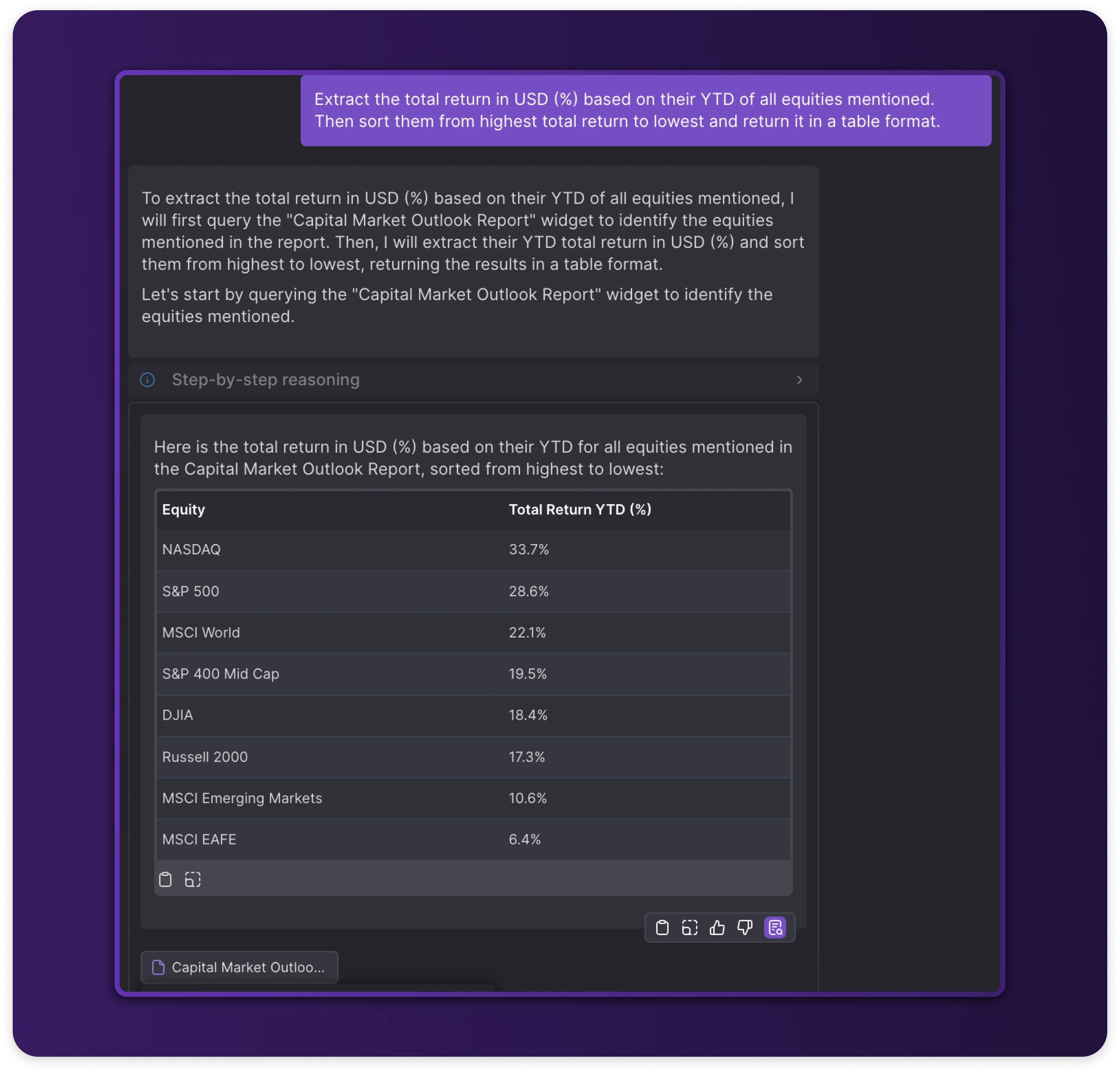 When analyzing unstructured data like market reports, our Copilot can extract specific information without parameter changes: