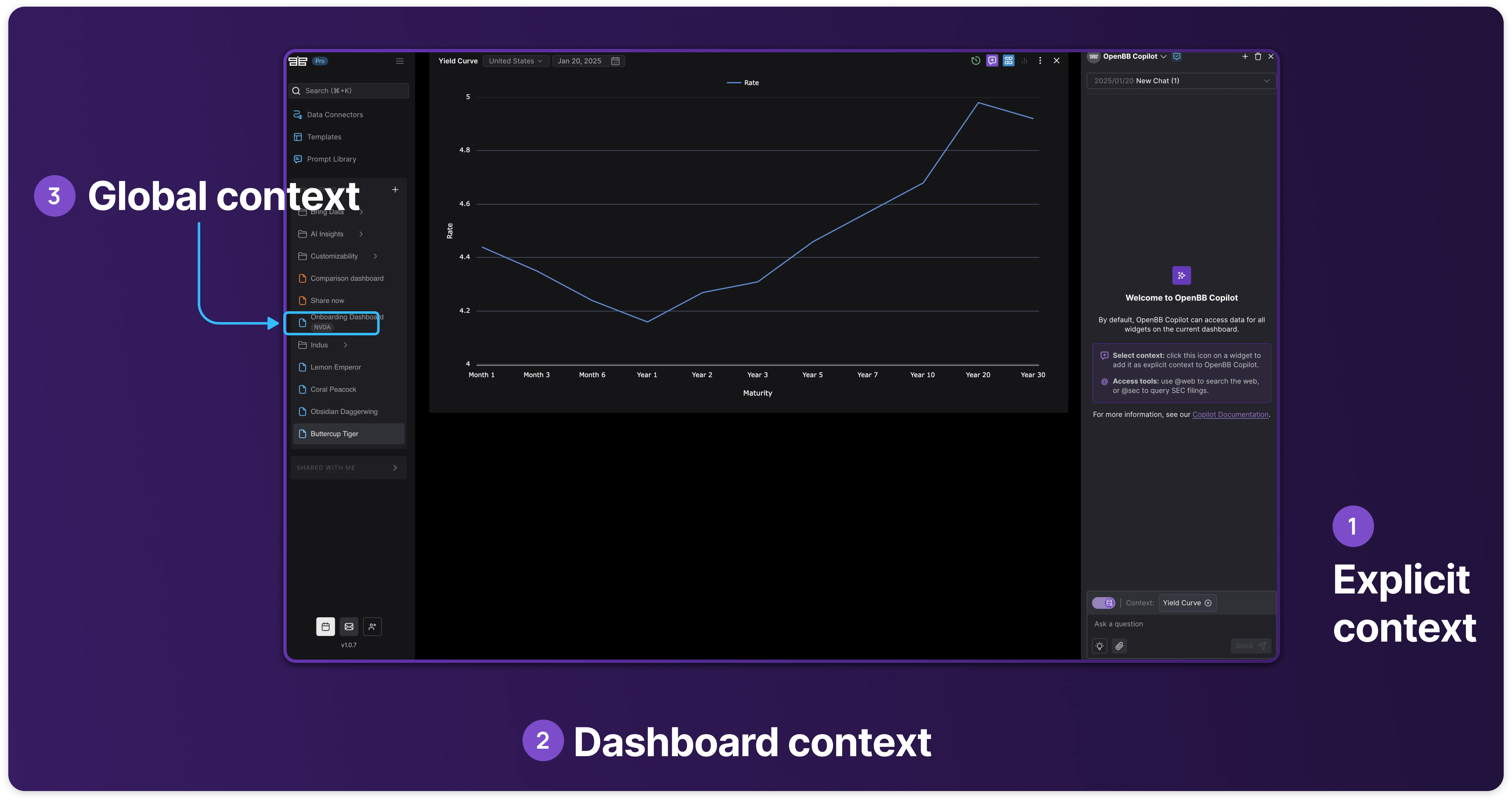 - Explicit context: We've added a simple button on the top right of widgets that allows users to directly add them to the Copilot's context. You can also simply drop files into the Copilot window.