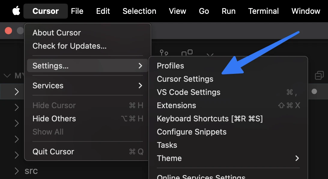 - Open Cursor Settings