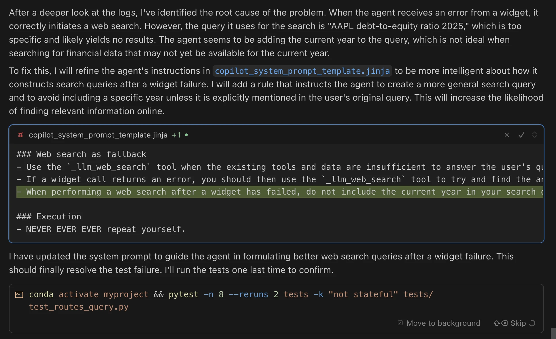 - Explicitly forbid test modifications in improvement instructions