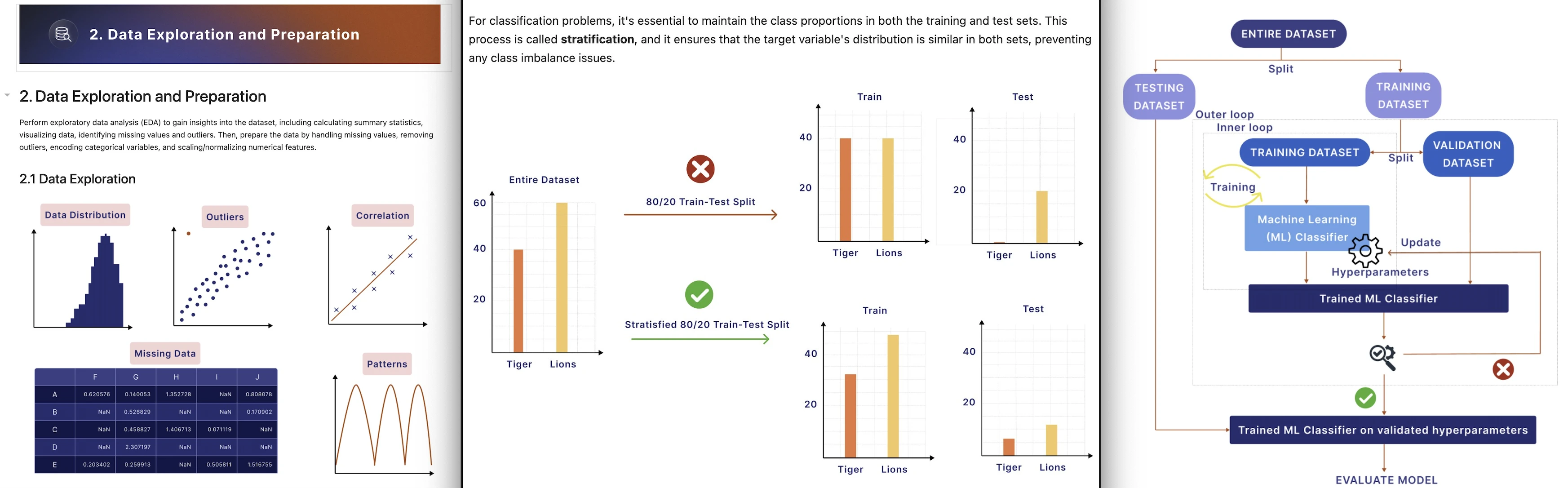 3.b. Data Exploration: Initial Analysis: Is there an exploratory data analysis? Are descriptive statistics used to better understand the data? Visualization: Are visualizations (e.g., graphs, plots) used to illustrate data distribution, correlations, and important patterns? Are these visualizations clear and informative?