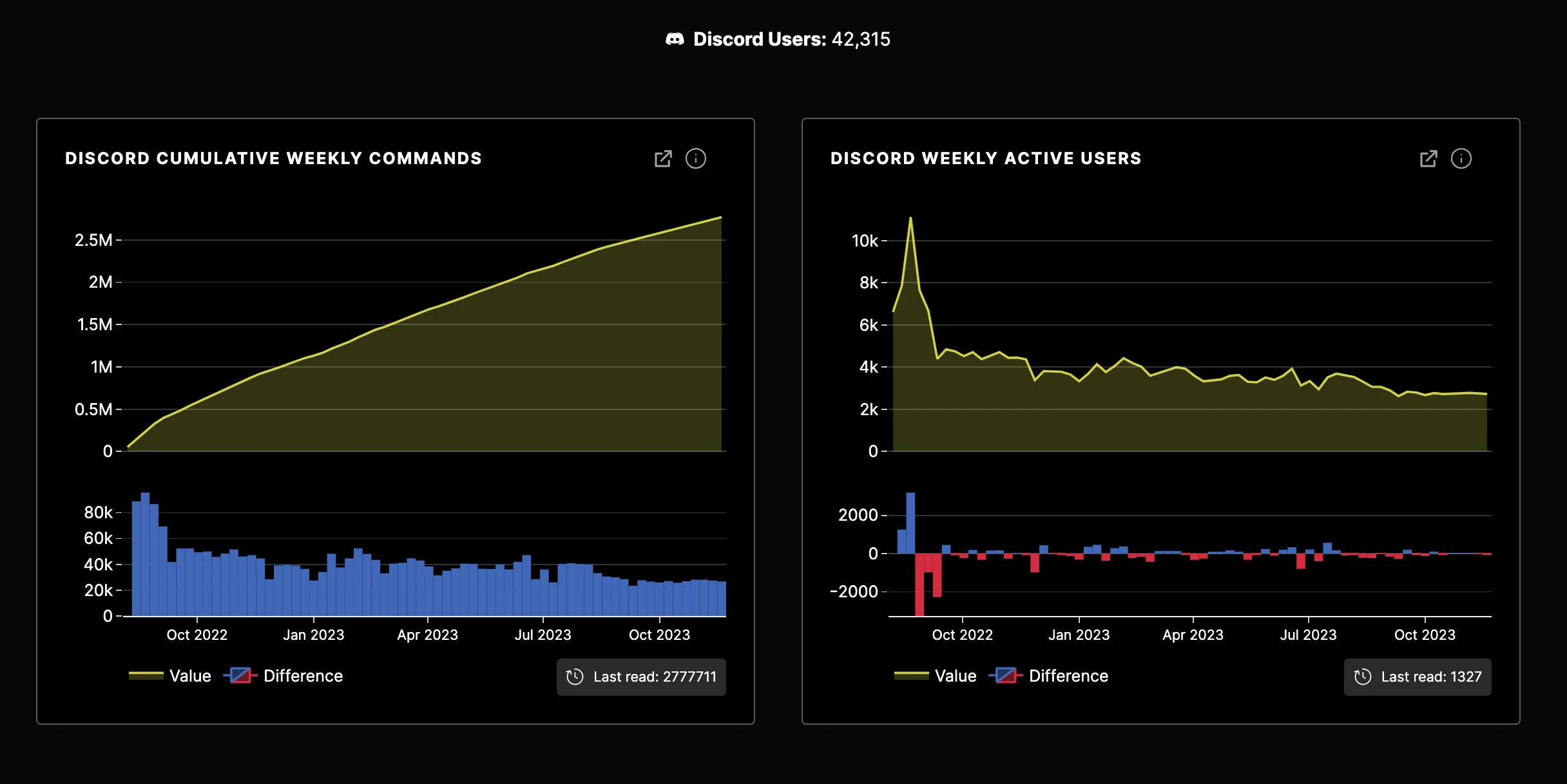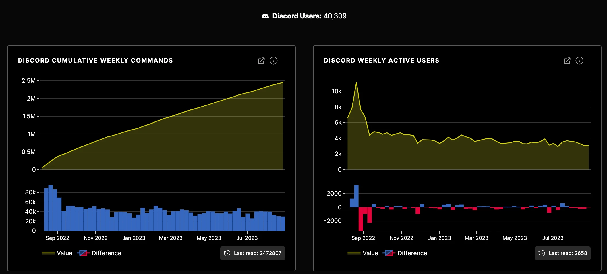 In September 2022, Discord changed its command syntax to force commands to start with "/" and the user drop was noticeable.