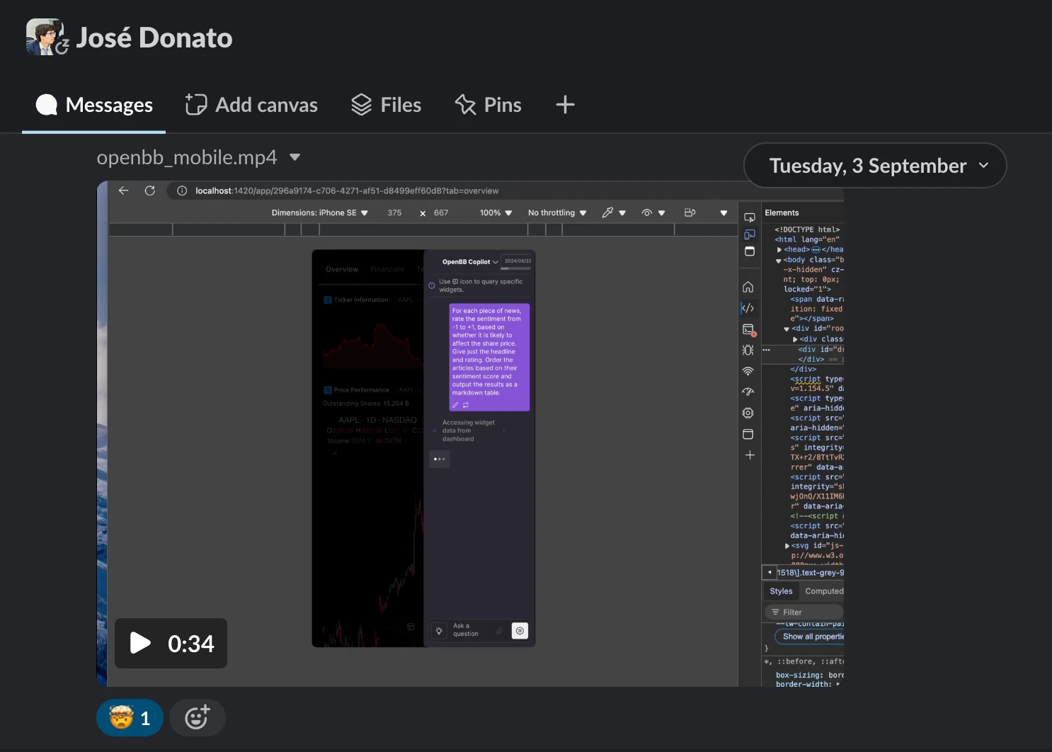 Jose sent me a video of a mobile version somewhat polished. It had the same UX as the terminal, but it rendered nicely on mobile.