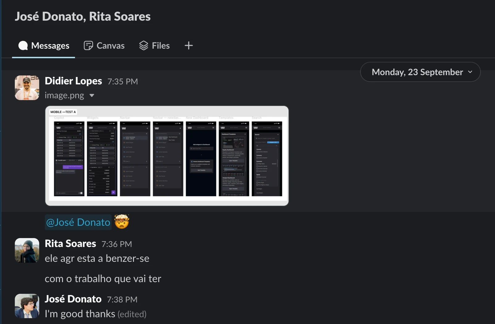 On the 23rd of September, I pinged Rita Soares - our lead UI/UX.