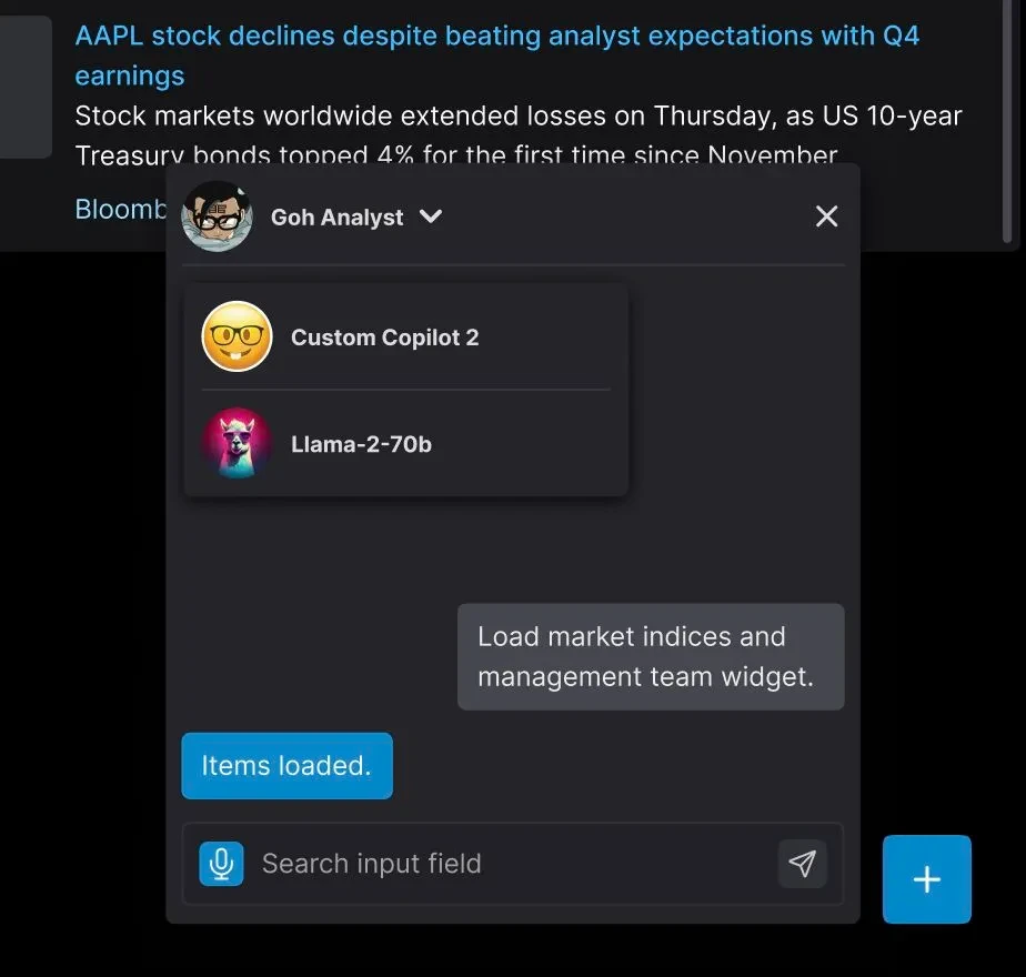 We are preparing for this shift at OpenBB and I spent the last few days working on a proof-of-concept with José Donato that will allow users to bring their own copilots to the Terminal Pro. And even have these interact with each other.