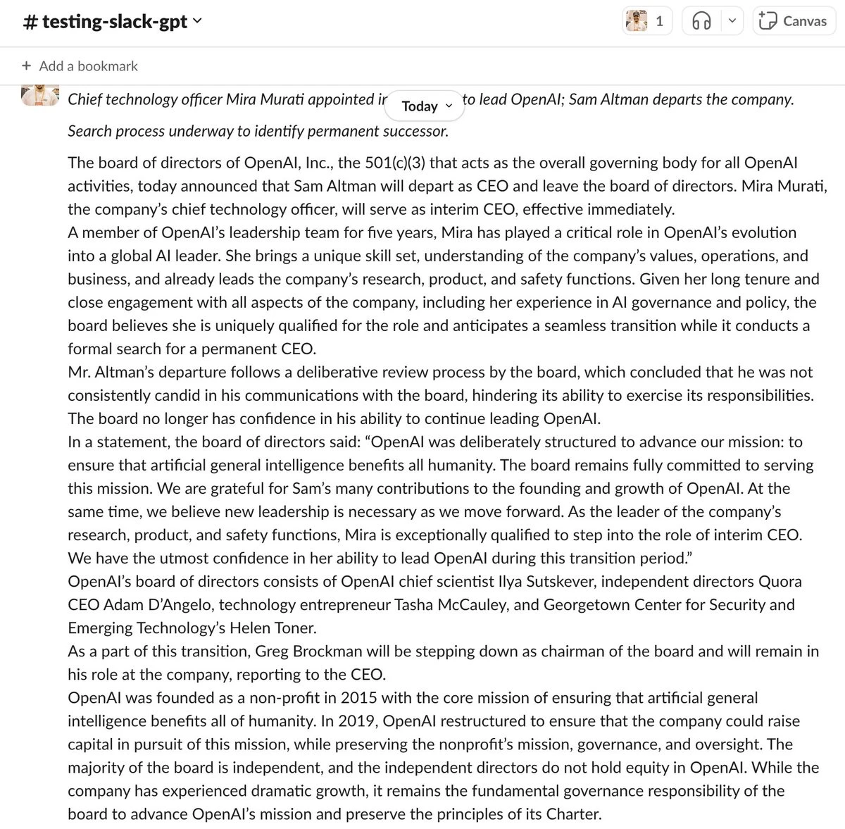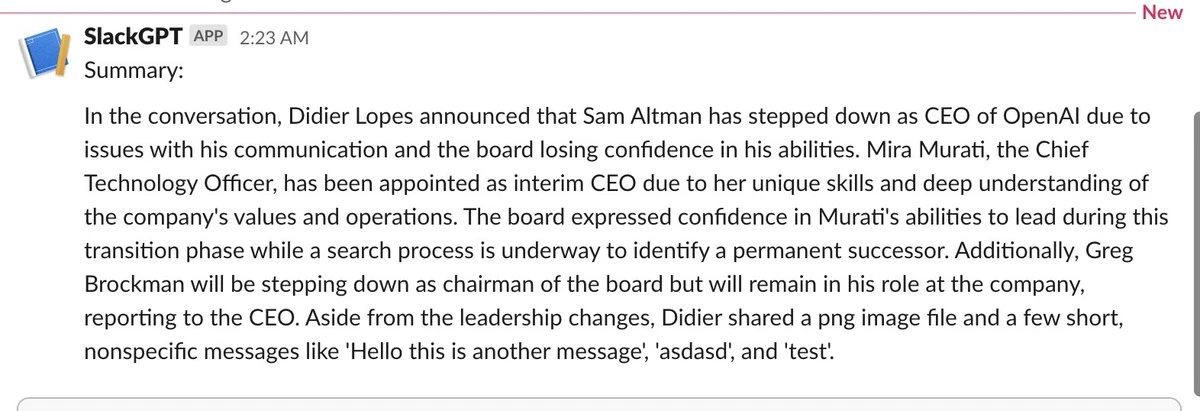The SlackGPT summarized it as follows: