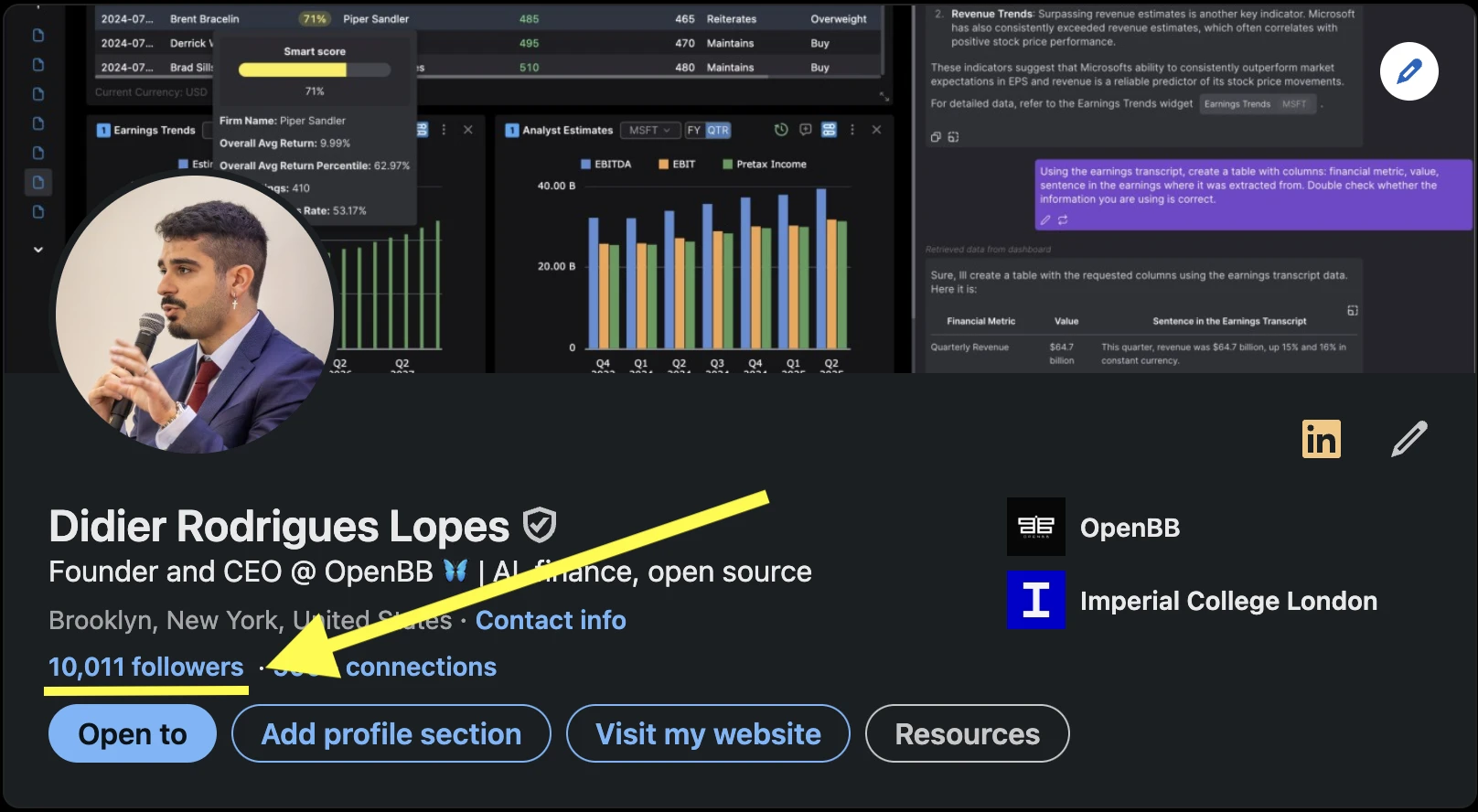 A personal reflection on my 6-year journey to 10,000 LinkedIn followers and how sharing my work publicly led to unexpected opportunities and the creation of OpenBB.