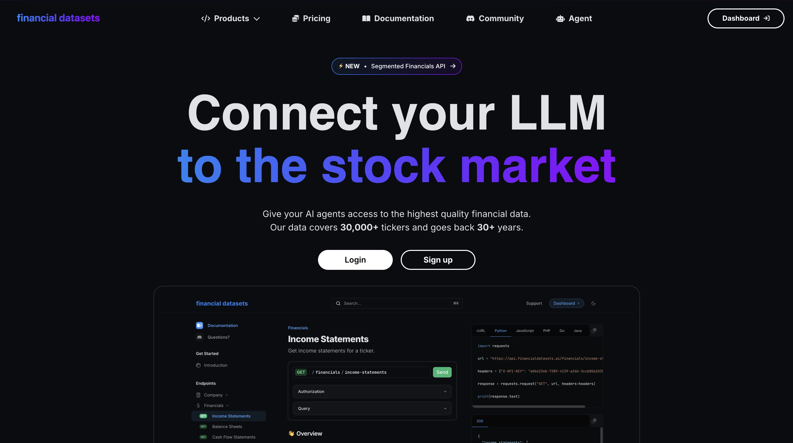 This post explores Financial Datasets, a data vendor focused on top-tier developer experience and data quality, with an API built for AI agents.