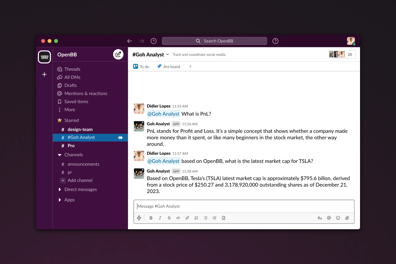 How I built a financial analyst that lives on Slack and has access to OpenBB.