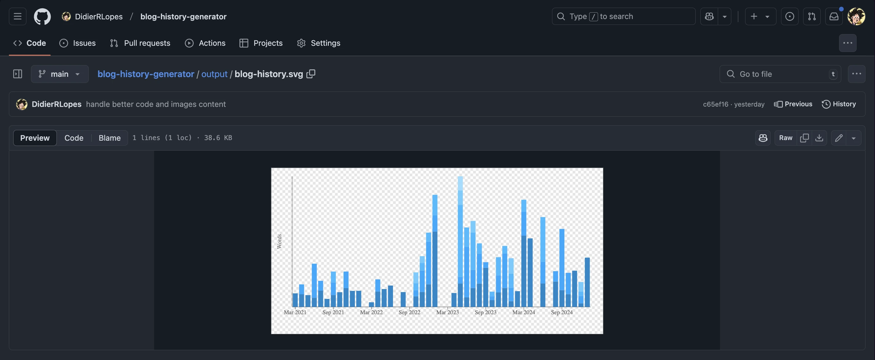 The SVG will be available here: ./output/blog-history.svg.