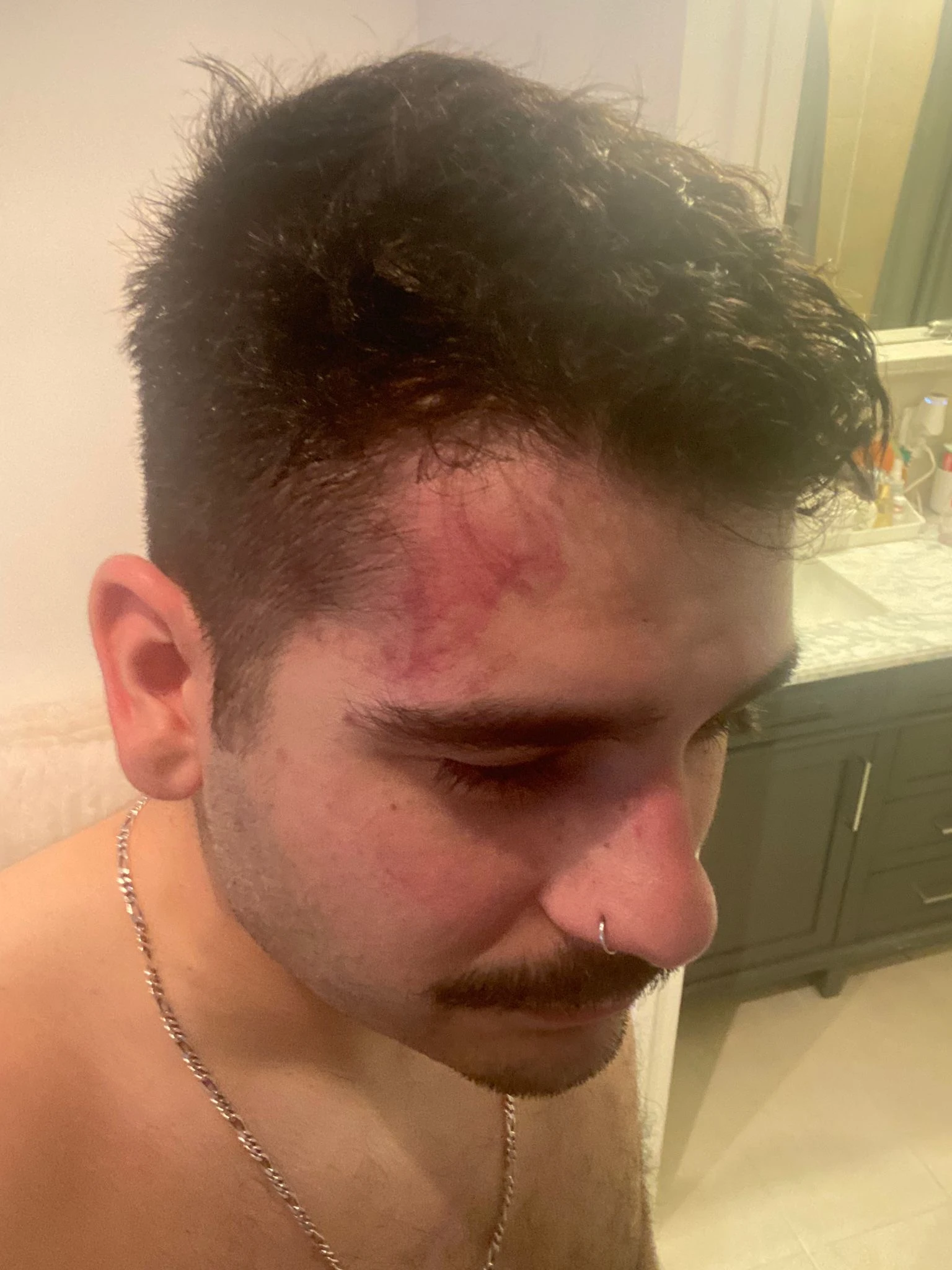 I still remember my first sparring session, I got hit on the nose and had tears coming out of my eyes from it. My nose hurt for 3 days in a row. It doesn't matter how many times the coach told me to keep my hands up, nothing taught me quicker than that cross on my nose.